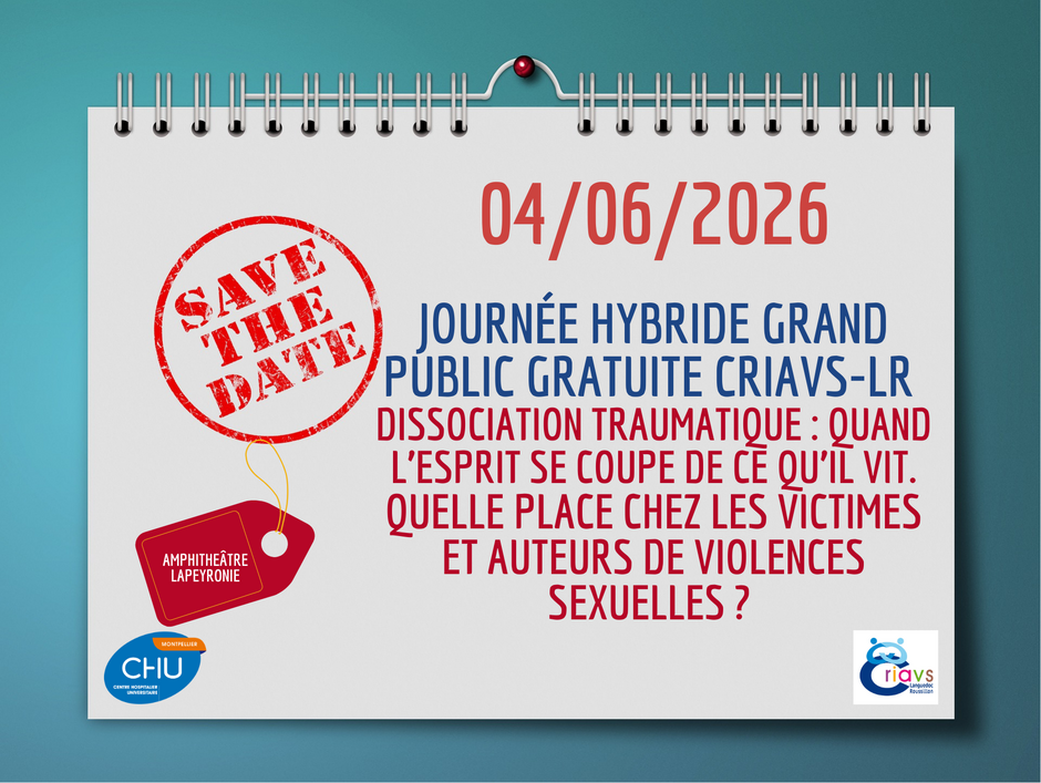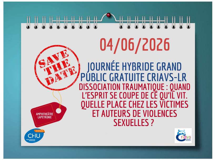 Save the date : Journée hybride gratuite grand public "Dissociation traumatique : quand l’esprit se coupe de ce qu’il vit. Quelle place chez les victimes et auteurs de violences sexuelles ?"