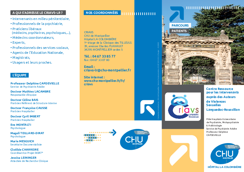 Pour améliorer la prise en charge et la compréhension des violences sexuelles, le CHU a mis en place un Centre Ressource pour les Intervenants auprès des Auteurs de Violences Sexuelles dans l'ancienne région Languedoc-Roussillon.